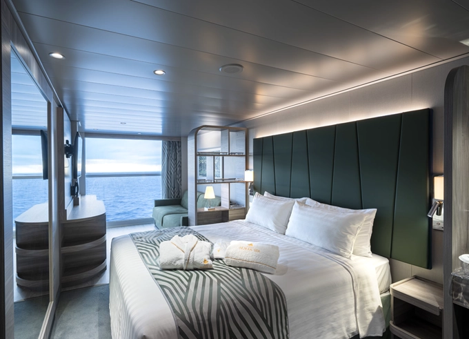 | SLP - Premium Suite Aurea Promenade & Ocean View 27 m² + balkón 9 m² s výhľadom na promenádu a na more. 11. paluba. Cenový model Aure | 3 963 € 3 963 € za osobu |