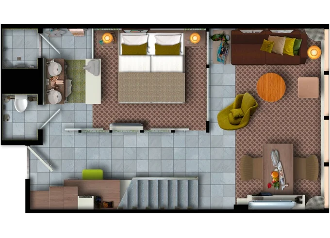 | SUTO - Themen Suite 54 m² + balkón 15 m² so stolom, ležadlom a hojdacou sieťou. Spálňa, obývacia časť, šatník. 14. paluba. Max 4 osoby. Výhody Suite. | 19 196 € 4 799 € za osobu |